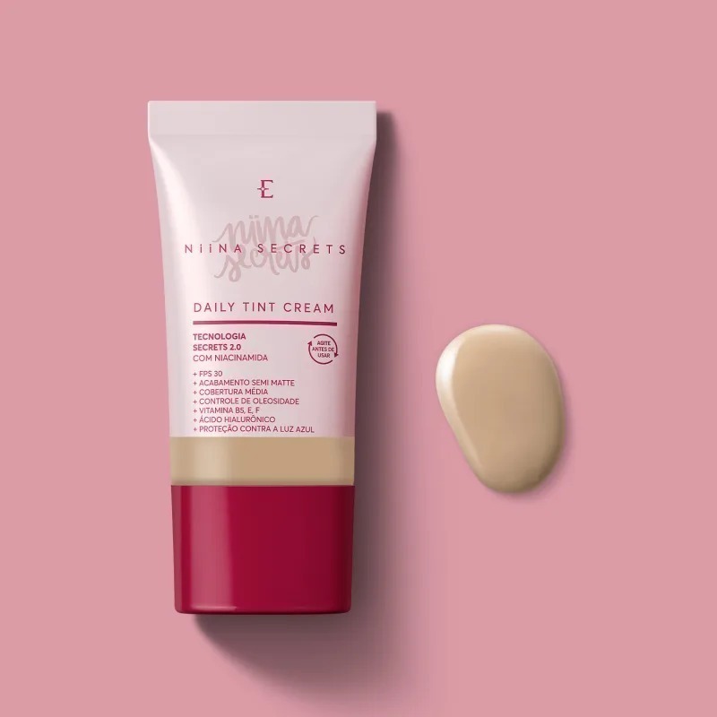 A Base Líquida Daily Tint Cream Niina Secrets é o tratamento diário 24h na primeira etapa da make que vai deixar a sua pele radiante! Com 11 benefícios em 1 só produto, é uma base protetora multifuncional indispensável para levar naquele kit maquiagem que sempre te acompanha: