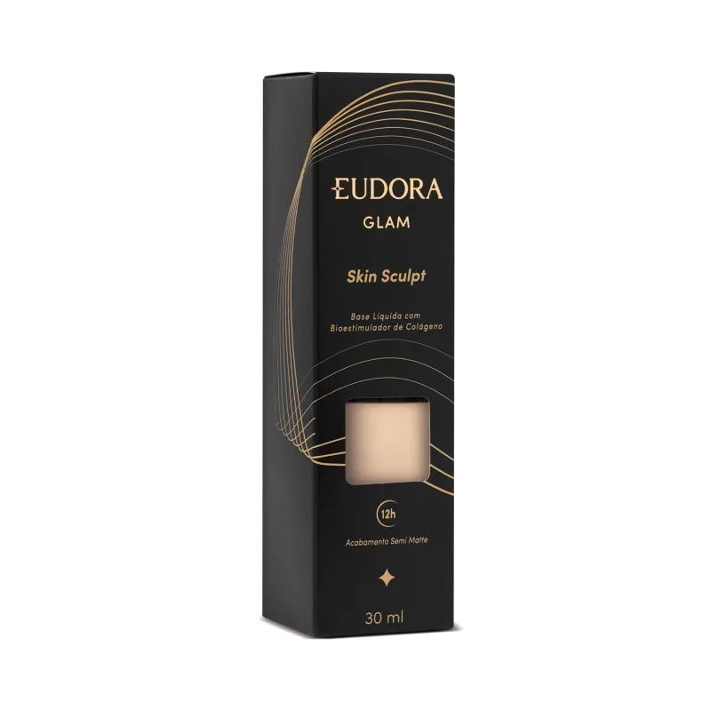 A Base Líquida Semi Matte Glam Skin Sculpt proporciona pele mais firme, contornada e definida em 30 dias¹.