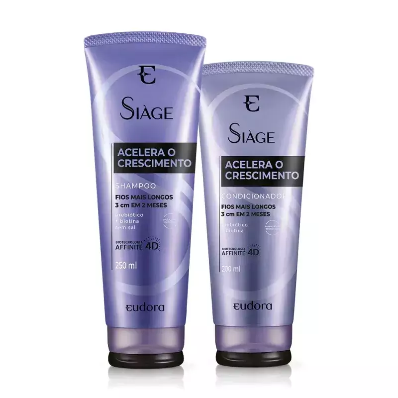 Este Combo Siàge Acelera o Crescimento vem com dois itens básicos para cuidar dos seus cabelos: shampoo e condicionador. A linha proporciona crescimento acelerado dos fios com força total. Sua fórmula com Prebiótico e Biotina atua diretamente no equilíbrio do couro cabeludo, ativando o metabolismo e estimulando o crescimento saudável dos cabelos.
