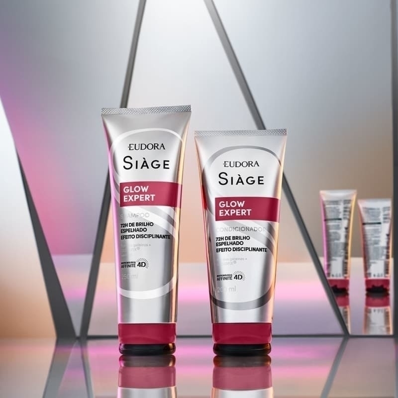 O Combo Siàge Glow Expert entrega fios hidratados, com brilho espelhado e alta capacidade de refletir a luz. Sua fórmula contém Flor de Geleiras que recria o banho gelado nos fios para um brilho espelhado, e Glossfix, um componente com alta capacidade de refletir a luz e fixar o brilho. Confira:
