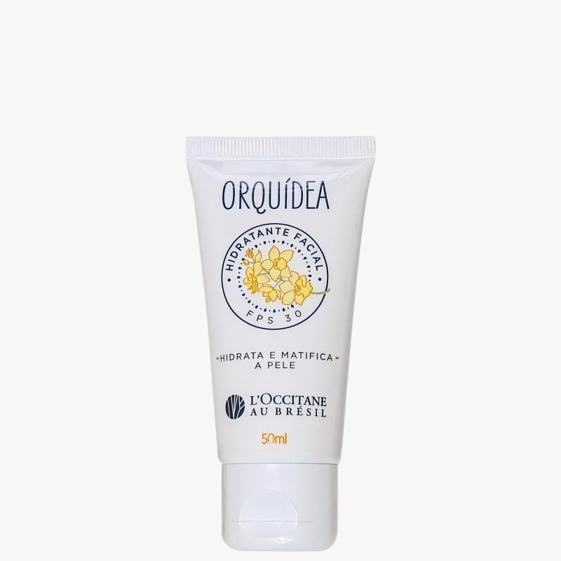 Hidratante facial com FPS 30, para pele mista e oleosa. L'Occitane au Brésil Orquídea hidrata profundamente e garante acabamento matte, com ação prolongada de até 24 horas.