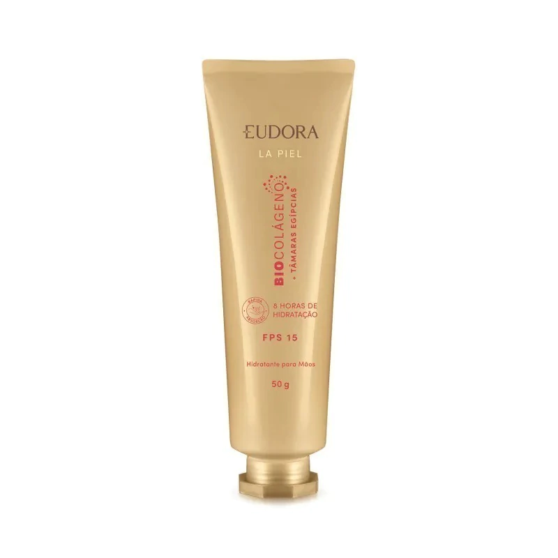 O Creme Hidratante para Mãos FPS 15 La Piel Tâmaras Egípcias foi desenvolvido com a tecnologia do Biocolágeno que, associado com o Pantenol e Niacinamida, traz mais firmeza para a sua pele, além de hidratar mãos, unhas e cutículas por até 8 horas.