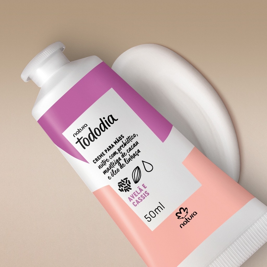 o creme para mãos de Tododia Avelã e Cassis contém ação prebiótica, que mantém o equilíbrio natural da pele e evita o ressecamento. sua textura absorve rapidinho, deixando as mãos macias e hidratadas.
