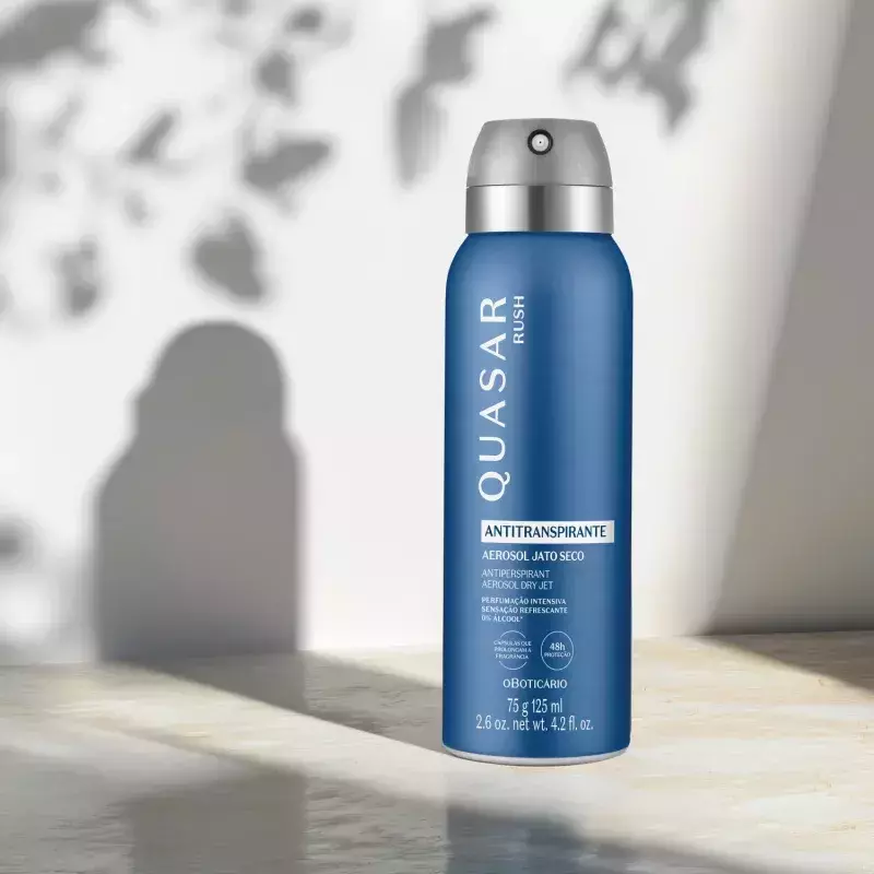 É preciso ter coragem e energia para se reinventar em meio às incertezas e mudanças. Por isso, O Boticário traz a linha Quasar Rush uma fragrância da família olfativa Fougère Aquoso. Quasar Rush se inspirou no Cedro Azul para criar uma fragrância masculina fresca e energizante. Ela é surpreendente, marcante e te impulsiona a enfrentar todos os desafios!