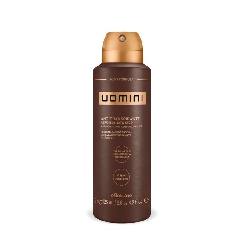 O Desodorante Antitranspirante Aerossol Uomini oferece 48 horas de proteção, mantendo a pele perfumada diariamente.