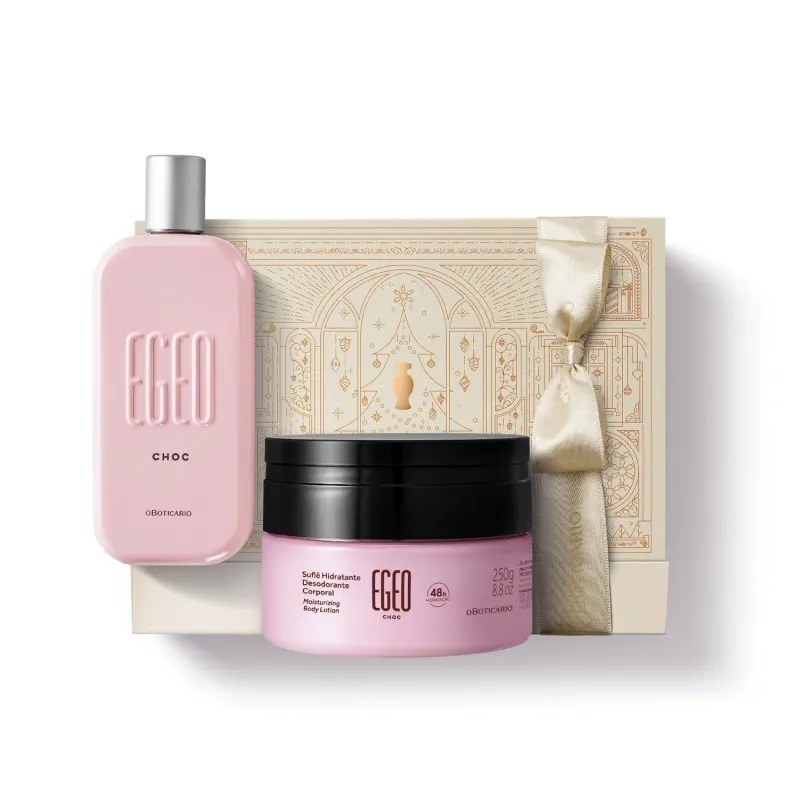 O Kit Presente Natal Egeo Choc é ideal para aquela pessoa que gosta de fragrâncias doces e divertidas. Ele vem com o desodorante colônia e um suflê hidratante, que vêm guardados em uma caixa de presente especial. Um presente de natal delicioso!