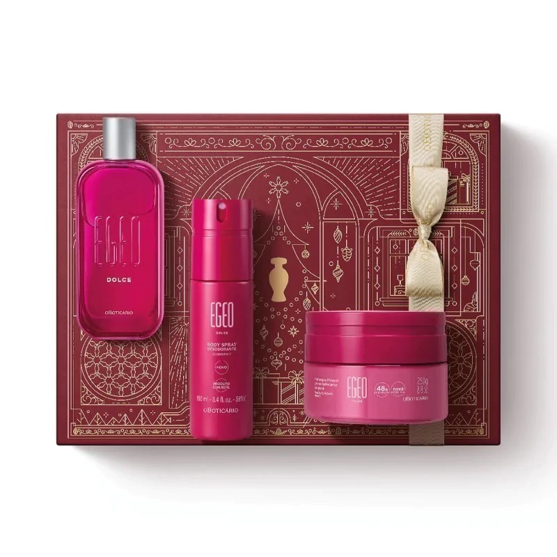 O Kit Presente Natal Egeo Dolce foi criado para mulheres que amam uma fragrância doce. O Combo Egeo Dolce traz 3 itens para completar a rotina de autocuidado. Os dois itens vêm guardados em uma caixa de presente especial. Um presente de natal para encantar: