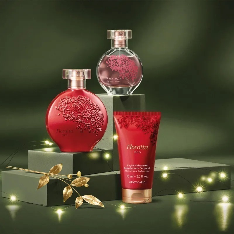 Este Kit Presente Natal Floratta Red traz as linhas com a elegante Flor de Maçã de Vermont, na versão tradicional, Floratta Red , na versão mais vibrante, Floratta Red Blossom, em miniatura, e também na versão loção corporal. Este kit presente feminino vem embalado em uma caixa de presente especial:
