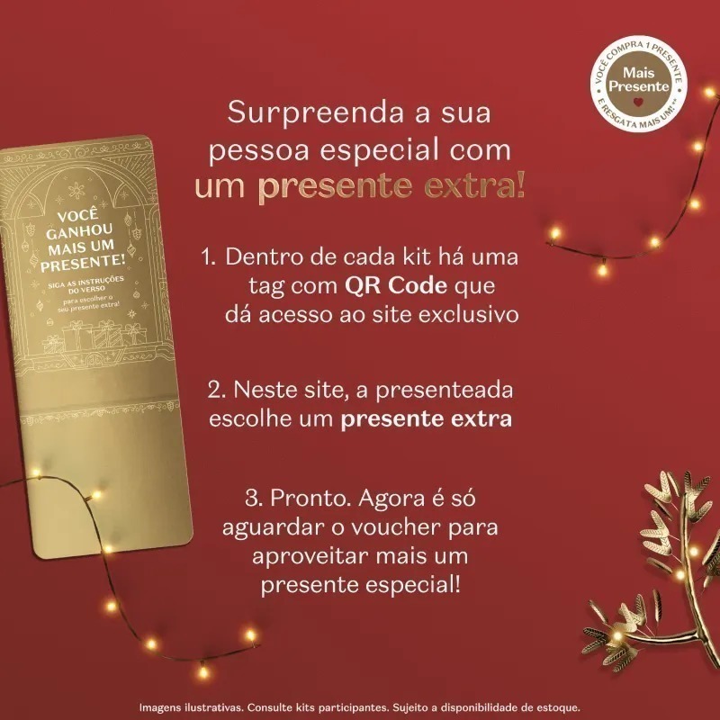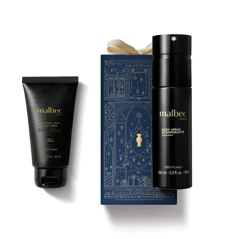 O Kit Presente Natal Malbec Gold traz a fragrância cheia de surpresas da linha.Com dois itens, vem com um body spray e um shower gel com nova fórmula. Além disso, vem embalado em uma caixa de presente especial: