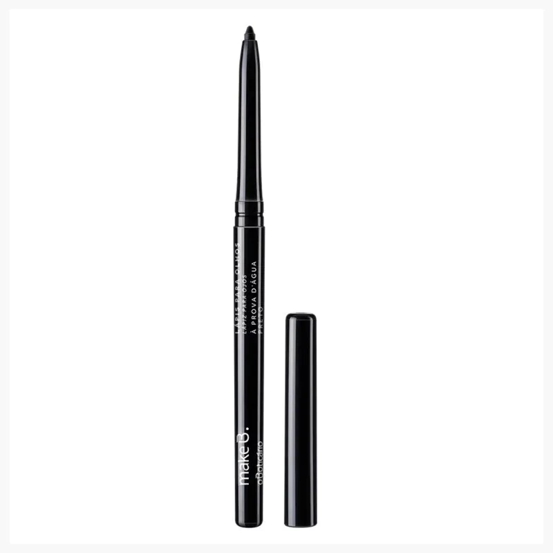 O Lápis Retrátil para Olhos Preto Make B. é ideal para criar um traço fino e preciso para deixar a maquiagem nos olhos com o estilo que você preferir! Prático e versátil, ele permite vários traços diferentes para ousar no look e ainda tem fórmula à prova d’água! Com textura cremosa, o lápis retrátil para olhos tem secagem rápida, evitando que a fórmula transfira ou borre, e ainda tem ótima fixação e cobertura uniforme para usar o dia todo sem precisar se preocupar! Por ser um lápis retrátil, além de ser fácil de usar, ele dispensa o uso de apontador. É só girar e ajustar no tamanho que você quiser e fazer o traço do jeito que você mais gosta!