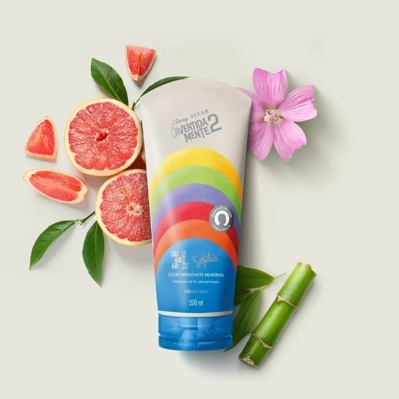 A Loção Hidratante Desodorante Corporal Memórias Sophie Quasar Next Divertida Mente 2 entrega autocuidado com a pele do corpo com hidratação e perfumação, em uma fragrância desenvolvida com ingredientes que despertam sensação de bem-estar e alegria, comprovado através da neurociência*