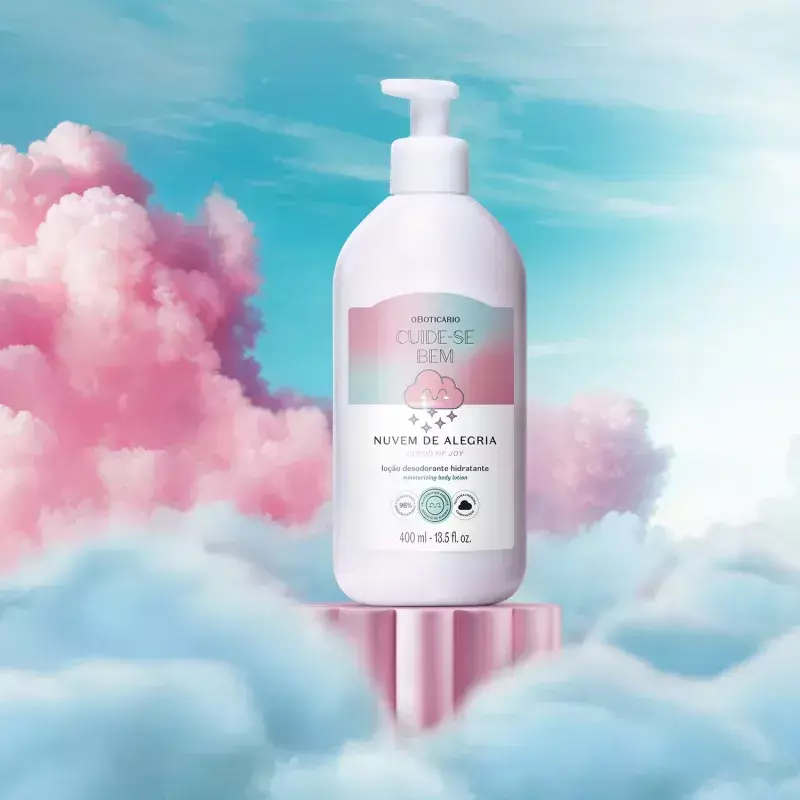 A Loção Hidratante Desodorante Corporal Cuide-se Bem Nuvem de Alegria chegou para dar aquela levantada no seu astral! Com textura cremosa como nuvem, entrega uma fragrância frutal cítrica que promove sensação de felicidade¹, inspirando ao seu redor uma verdadeira nuvem de alegria.
