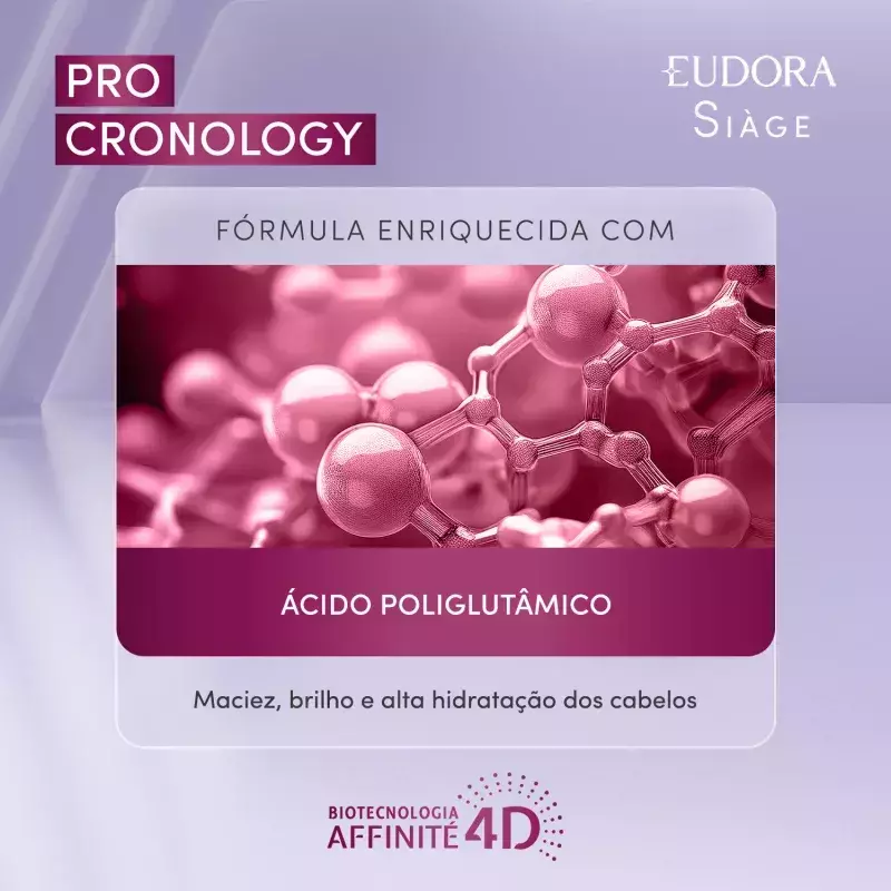 Toda a linha possui fórmulas enriquecidas com Ácido Poliglutâmico: ativo biotecnológico que auxilia no equilíbrio da umidade natural interna e externa dos fios, garantindo maciez, brilho e alta hidratação dos cabelos.