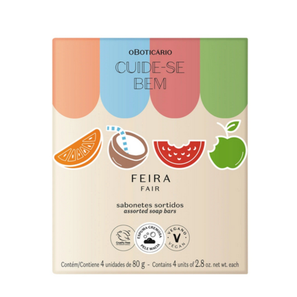 Sabonetes em Barra Sortidos Cuide-se Bem Feira 4x80g Com Cuide-se Bem Feira, a feira é diferente, está em toda parte, vai com você aonde você for, no dia e na hora que você quiser! Em edição limitada, os Sabonetes em Barra Sortidos Cuide-se Bem Feira vão deixar sua pele super macia e com um delicioso cheirinho de frutas pós-banho. Trazendo uma salada de frutas* com tangerina, coco, melancia e maçã verde para o seu banho, estes sabonetes não só higienizam, mas também proporcionam: -Espuma cremosa; -Pele perfumada e aveludada; -Limpeza delicada sem ressecar a pele; -Livre de parabenos, silicones e petrolatos. Veganos e com 97% de ingredientes naturais, os sabonetes de Cuide-se Bem Feira também são embalados com plástico vegetal, trazendo cuidado com você e com o planeta. Para uma rotina mais prática, leve e sustentável, os Sabonetes em Barra Sortidos Cuide-se Bem Feira trazem a diversidade de uma feira para você se cuidar!