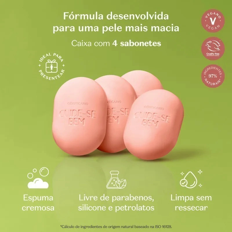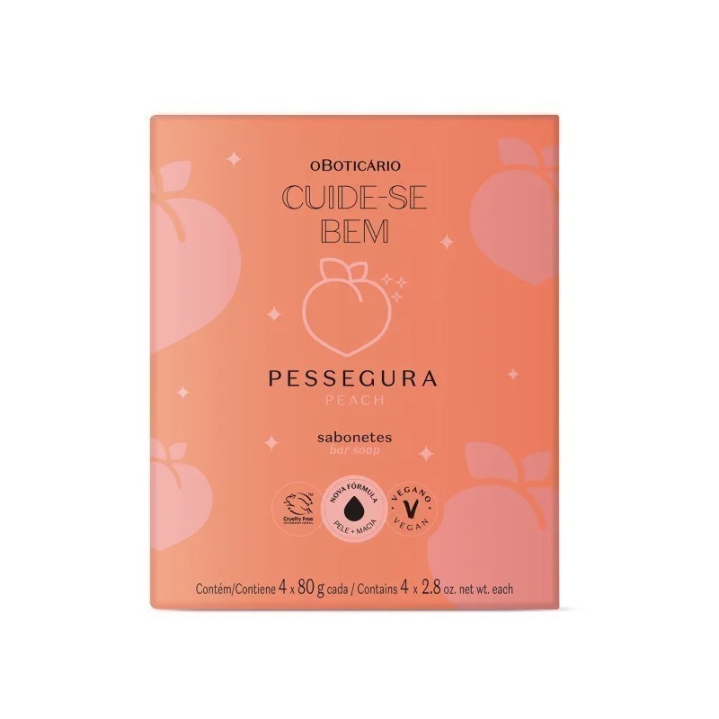 Este sabonete em barra tem espuma cremosa, higienizando sua pele enquanto a mantém perfumada com a fragrância doce e aveludada de Cuide-se Bem Pessegura. Confira mais benefícios: