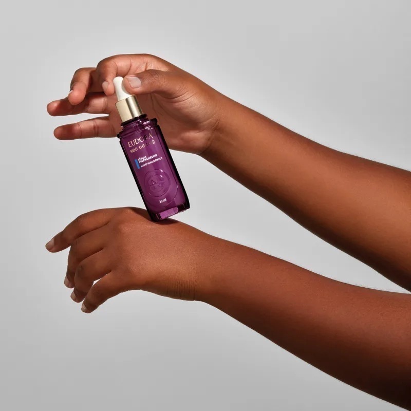 Apresentando toque seco em fórmula sérum, o item Eudora Neo Dermo apresenta resultados comprovados: