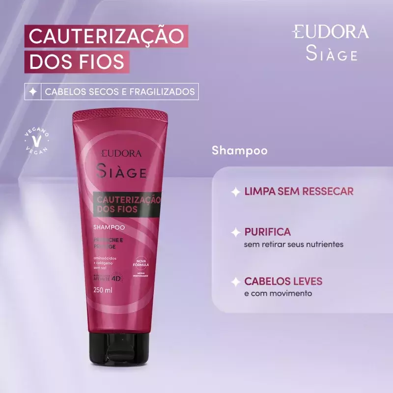 O Shampoo Siàge Cauterização dos Fios entrega cauterização profunda para os fios e resultados de salão.