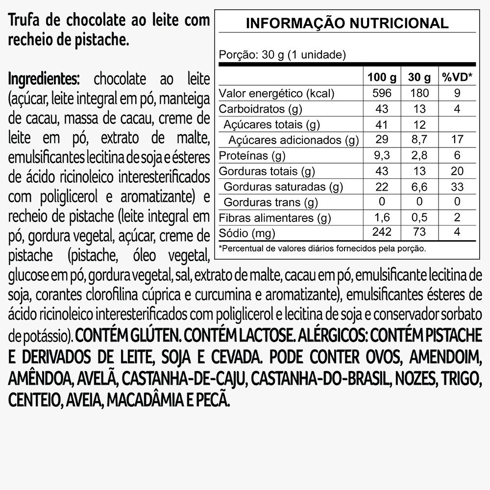A Trufa Pistache da Cacau Show é a escolha perfeita para quem busca um sabor sofisticado e marcante. Com uma harmoniosa combinação entre o chocolate ao leite e o inconfundível sabor do pistache, essa trufa entrega uma experiência única.